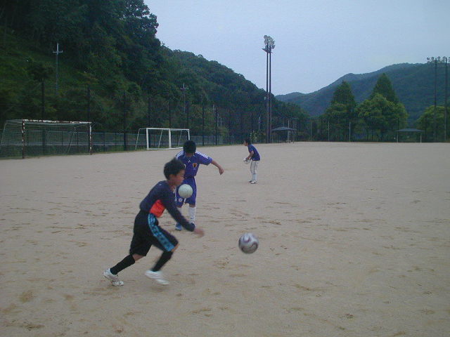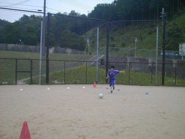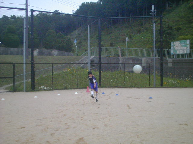 今日は八千代スクールの日でした。先週は途中に雨が降ってしまったのですが、今日もカラっともいかない天気でした(%痛い男%) それでも、7名全員が参加でのスクールが出来ました(%笑う男%) 今日もリフティングで前に進む事からスタートをしました。風もそんなになかったので記録を出すのにはいい条件にあったのですが、全員の集中力がイマイチだったようで・・・(%ニヤ男%)(%涙%) 最高記録は出たけど、八千代の子が多いのは、一回に大きく蹴って距離をかせぐ方法が多く、考えまでは否定したくないし記録が残れば一つの手段と言えるけど、せっかくやるのにそんな一か八かの挑戦ばかりをやっているとなかなか上達出来るものもしないし、もう少しそこは考えてもらうようにしたい。