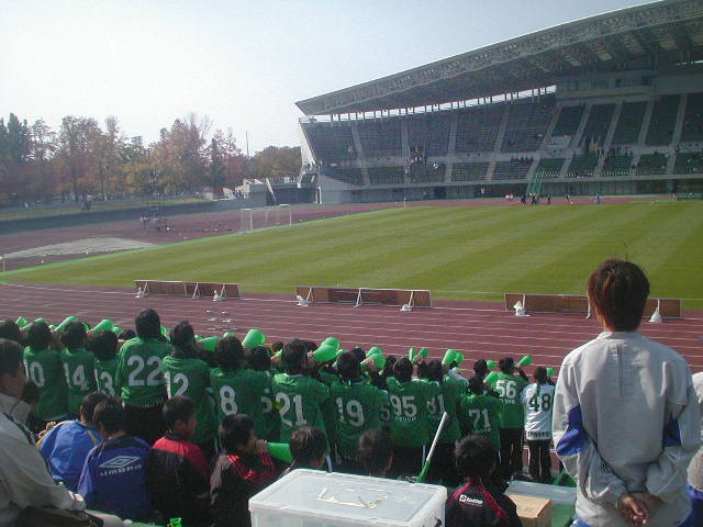 今日は、高校サッカーの冬の全国大会へとつながる県大会が各地で行われていました。兵庫県でもありましたが、今日は、1期生の金高 慎太郎くん、花瀬 翔平くん、2期生の上田 悠平くん、藤原 大将くんが通っている岡山の作陽高校の応援に行きました。同時に兵庫県でも、2期生の今中 佳吾くん、梅田 貴義くん、園崎 翔平くんが行っている神戸科学技術高校の決勝、島根県では、2期生の川口 雅くん、中島 健太郎くんがいる立正大湘南高校の決勝が同じ日にあったのです(%笑う男%) どこに行こうかとうれしい悩みだったのですが、やはり先輩優先という事で1期生がいる岡山の決勝に顔を出しました。全国への一枚のキップを手に入れる為の最後の舞台に教え子が9名もその学校にいるのはうれしい限りです(%笑う男%) もちろん1年生がほとんどだし、メンバーにも入れない状態ではありますが、応援だろうと全力で、その場で自分が出来る事をしっかりとやってくれるメンバーばかりです!!昨日からそれぞれにメールで連絡を取って今日は精一杯の応援とチームの一員でいる事を誇りに思ってがんばれよ!と言葉を掛けました(%笑う男%)
