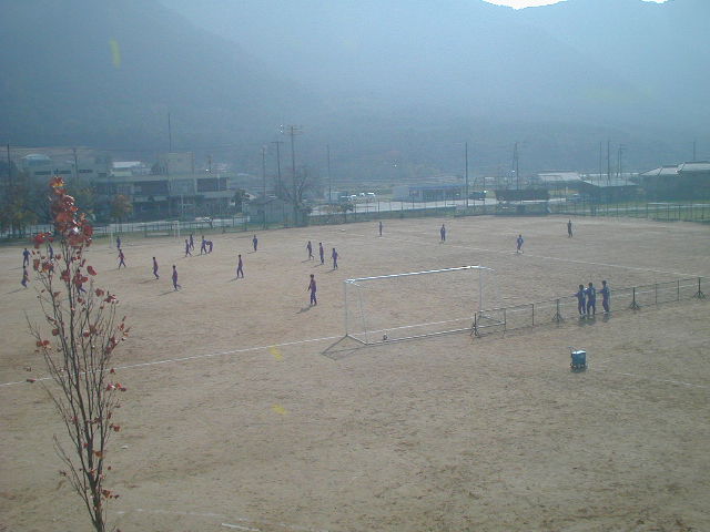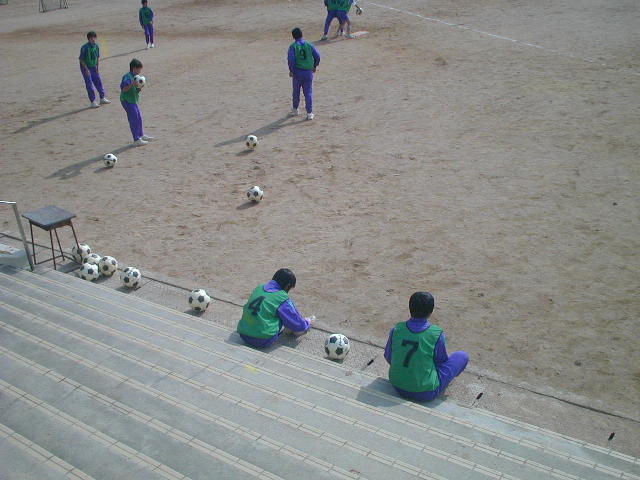 4時間目は体育で2年生もサッカーでした。ここで、もう一つのクラスの亮汰くん、悠平くん、賢悟くんを見るようにしました。体育に着替えて外に行く前には挨拶を交わしたのですが、中学生にもなってくるとみんな身長も大きくなっているし、クラスのファルコの子以外の子が、『あの人、誰やったん??』と隣にコーチ本人がいるのにも気付かずに会話をするシーンが何度かあります(笑) 背の低いコーチは子供と一体化してしまうようです・・・情けない(%痛い男%)