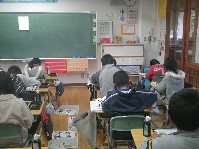 この右から2列目の前から2人目が凌くんで、その後ろが大くんです(%笑う男%) 佑一くんは席は離れていたのですが、習字に半紙を忘れていたようで苦戦していました(%痛い男%) 凌くんもですが・・・(%ショボ男%) でも、きちんと先生に申し出て用紙をもらっていたのはさすが凌くんだと思いました。今度からは忘れないようにな(%ニヤ男%)