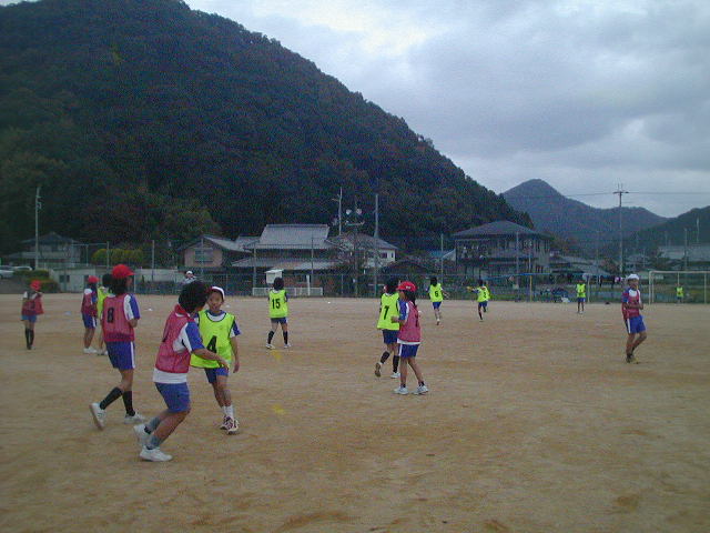 ゲームでは男子12人。女子11人だったので一つのコートで、男子は男子と勝負、女子は女子を勝負にしました。一度にボールは2個。キーパーは絶対に男子というルールでやりました(%笑う男%) こうすれば女子も遠慮なしにシュートが打てるし、ゲーム的には良かったと思います。すごく良かったのは、端っこで歩いたりする子がいなかった事!!もっとやるのが嫌だな〜という子がいると思ったのですが、全員参加をしてくれたのがうれしかったです!!本当は今日の体育は跳び箱だったらしく、それは嫌だったからサッカーを授業にしてくれてありがとう!!と女子にはお礼も言われました(笑) 理由がイマイチですが・・・(笑) それでも、さすが最高学年の6年生はサッカーを習っていない子もとても上手だったし、大きなケガもなく全員が元気に終われたのが本当に良かったと思います(%笑う男%)(%星%)