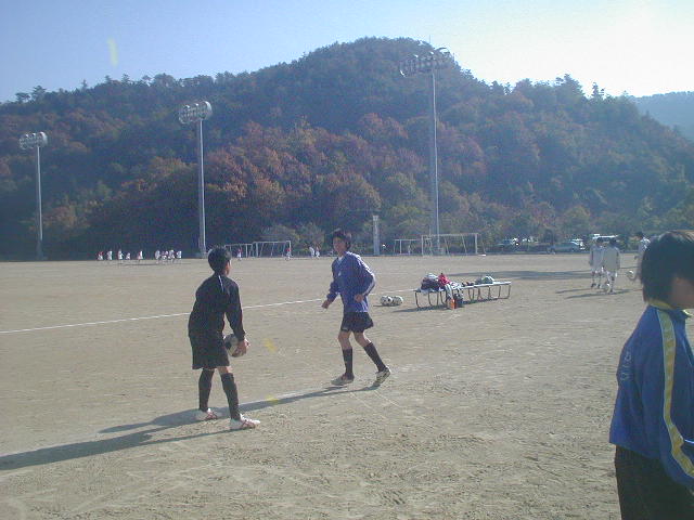 朝早くからの移動にもなりましたが、山の中にあるグランドなので、紅葉も綺麗でサッカーをするにも最適な天気でした(%笑う男%) 今日はA戦を2試合、B戦を1試合してもらいました。全員が出場機会はもちろんある中で、どのように昨日誓った目標をそれぞれに表現してくれるかを楽しみにしていました。グランドに着いてから着替えもすぐにしてアップを開始。今日は昨日の試合でケガをした翼くんを欠くメンバーとなりましたが、翼くんも今日はベンチでみんなの服をたたんだり、線審をしてチームに貢献してくれました(%笑う男%) 個々が出来る事を考えるという大切な事をやれていたと思います!