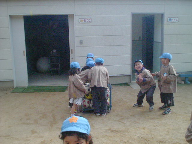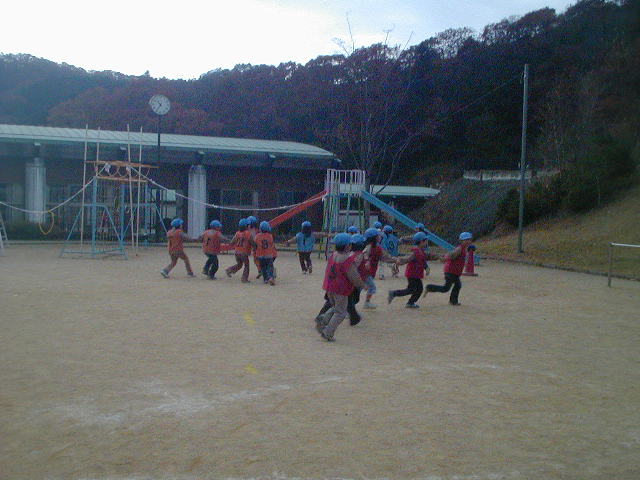 自分が逃げたいと思う方向とみんなの気持ちが一緒にならないので、何度も何度も手が離れるシーンがありました(%笑う男%)(%涙%) 一つの事に必死になるこの年代は、一緒に手をつないだまま、という事と逃げるという事の2つの事を同時にするのはなかなか難しかったと思います(%笑う男%) が、元気にみんなやってくれました(%笑う男%)