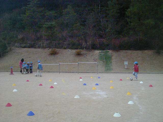 ここでも、ドリブルを常にするのですが、『動かす』『曲がる』『止まる』というように、足で扱うのに、思ったように出来るようになってきているのが、目立ちました(%笑う男%) だから、一番近い目の前のコーン、ではなく、それぞれが狙った好きな色のコーンを探して取る余裕があったのが良かったです(%笑う男%)(%笑う女%)(%星%)(%星%)