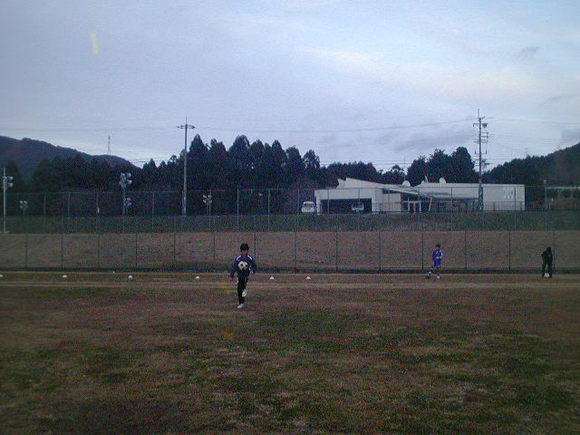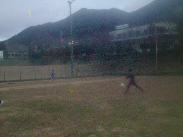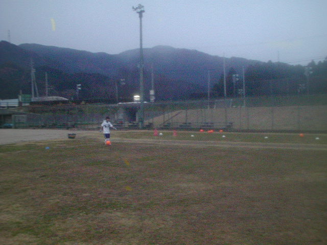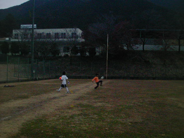 もう真っ暗になってからですが、ドリブルもしないで寒さをなくす為に2人組みのてつなぎ鬼ごっこをして体を温めました(%笑う男%) コーチは森野くんと組んだのですが、一回もタッチされずに終われたのが良かったと思う(%笑う男%) 手を必ずつないで行動しないといけないのに、4年生コンビの寛人くんと篤生くんは、鬼を手を離して交わしてからまたつなぐ、やってはいけないのですが、『ビッグブリッジ!!』とサッカーの技で例える発想はすばらしいと思いました(%笑う男%) ルールはルールなのでアウトでしたが(笑)