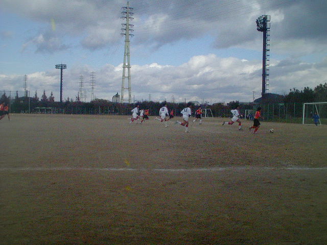 その後、1時間開いてから今度は赤穂さんとの試合でした。開始から足が重たい様子のみんなからはがんばりが少なく見えて、相手のほうが前へ前へ、と出てくるのを受け手しまっていた(%ショボ男%) 1試合目と大きな違いはここで、自分達から前に行けてたらいいけど、相手を受けてしまう事でチャンスは減るばかりか相手のペースで、試合は前半に失点を喰らって0−1でした(%怒る男%)