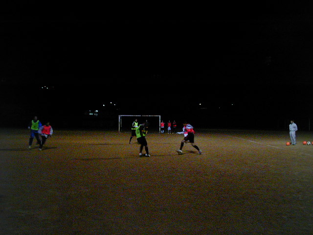 これが最後のメニューだったし、みんなの足は止まっていました(%ショボ男%) やはりがんばらないといけない所でがんばれていない子が目立ったし、新年最初だからこんなものかもしれない・・・でも、やっぱり体が動かなくても気持ちの執念みたいなものはもっともっと出してほしい。同じ抜かれるにしても抵抗をしないといけないと思う。喰らいつく気持ちに弱さが見えた今日の練習ですが、わざわざきついメニューを用意した監督の頭の中には、『疲れた中でどう工夫するのか?』って事を期待していたと思う。疲れているのに強引に突破するより、周りを見てルールを把握して攻めればもっといい攻撃、精度の高い攻めが出来たと思うだけに、今年はアミーゴはもっと頭を使ってサッカーをやってほしいし、自分もやりたいし要求していこうと思う(%笑う男%)
