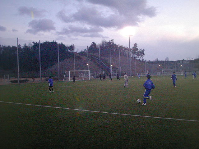 そして夕方の時間に三木の防災公園で志染FCさんとの練習試合をさせてもらいました(%笑う男%) 冷え込みも厳しくなってきた中でしたが、やはり芝生は気持ちがいいもので、ここで練習の成果をしっかりと発揮してもらえるように期待をしました。グランドに入ってからはすぐにアップをして試合を迎えました(%笑う男%)