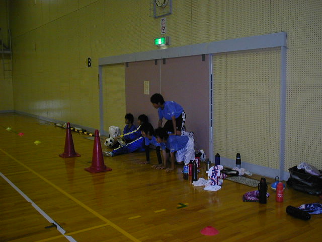 今日は室内練習を行いました。昨日の試合ではいい試合をしていても最後の一本や単純なミスからの失点があったので、『一本の重みを理解する』事をどれだけの子がやってくれるか?期待していました。でも、やはり一日経つとリセットされる子が多く、昨日の悔しさを今日はもう忘れているような感じでした(%ショボ男%)