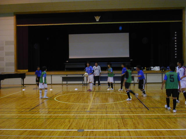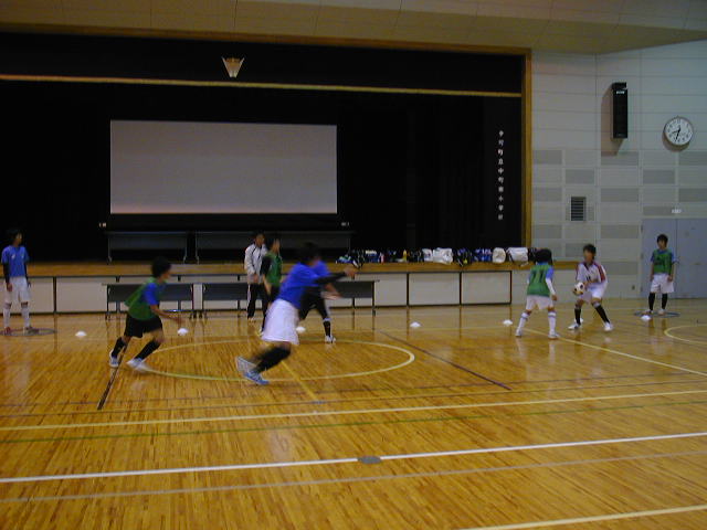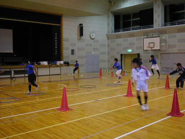 ブラジル体操で全体を動かした後にステップ練習を延々とやりました。と言っても3分してから2年生一人一人に『全員が本気の声を出したら終わるから』と伝えました。それを聞いた2年生がどんな行動をとるか?がまずは大事でした。結果は聞いた自分ががんばって声を出していたのです。悪くはないし、間違っていないと思う。でも、『全員が』という言葉の意味を理解してほしかったし、出していない子に誰が声を掛けるか?ですね。それが最後まで誰も出来なかった事が今のチームの課題ですね(%ショボ男%)