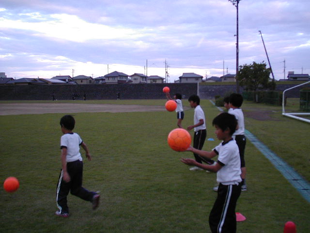 その後はいつもの5箇所のリフティングをしました。ここでは全スクール共通して、『落ちるまで手で取るな!その一回を意地でも当てよう!』と言ってます。たった一回の回数を上げる努力が出来る子は、記録が早く伸びる子です。たった一回・・・と軽く見てしまう子はなかなか成長しません。どんな記録だって一回、一回の積み重ねなんですから当然ですよね(%ニヤ男%) そういうがんばりとか、集中をスクールではこだわっていこうと思っています(%笑う男%)