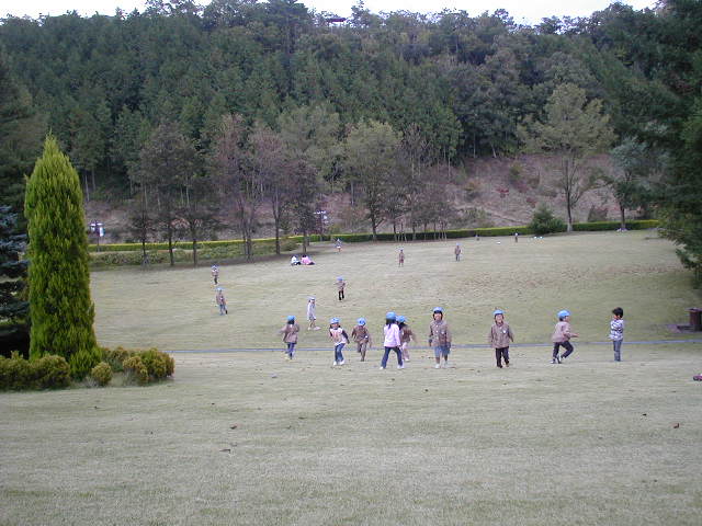 そして、最後まで走りきれたコーチは、みんなが芝生広場で遊んでいるのを知っていたので、見に行きました。