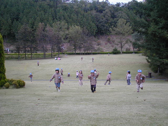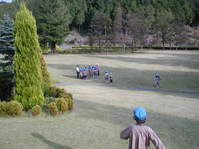 途中にかくれんぼをしたのですが、その時もコーチは一人で木の陰に隠れていたのに、多くの子が一緒に付いてきて、一緒の場所に隠れるから木から溢れるし(笑)、簡単に見つかるし・・・(笑) かくれんぼではなくなっていました(笑)