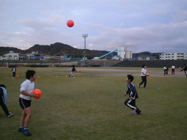 なので、相手を持ったり、抱えたり、つかんだり・・・・サッカーではファールです。でも、このゲームではOKにしました。みんなががんばるという事を出す為には多少手荒であっても分かってもらう為には必要だと思っています(%笑う男%) 相手が痛むような、叩くとか蹴るとか、そういうのはファールとして、がんばる事以上のきつい事はしっかりとファールにする線を引いてがんばってもらいました!!(%笑う男%)