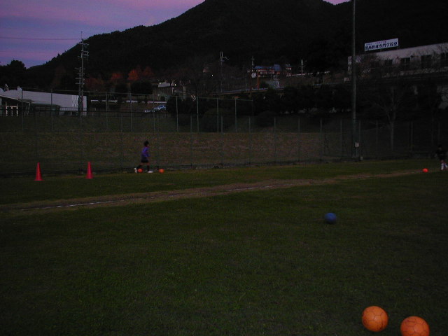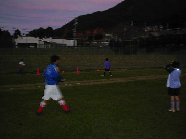 そして、みんながある程度満足した所で、日も暮れて暗くなってきたので寒さも出てきた事もあり、3対3でゲームをしました(%笑う男%)(%音符2%) コーチも一緒に入って本気でやりました。試合は同点で終ったと思いますが、ここでは来南くん、寛人くん、篤生くん、森野くんの技術の高さがしっかりと出ていました。一緒にやった智貴くんも抜かれるシーンがあるなど、なかなか切れ味するどいフェイントを持っているメンバー達でした(%笑う男%)