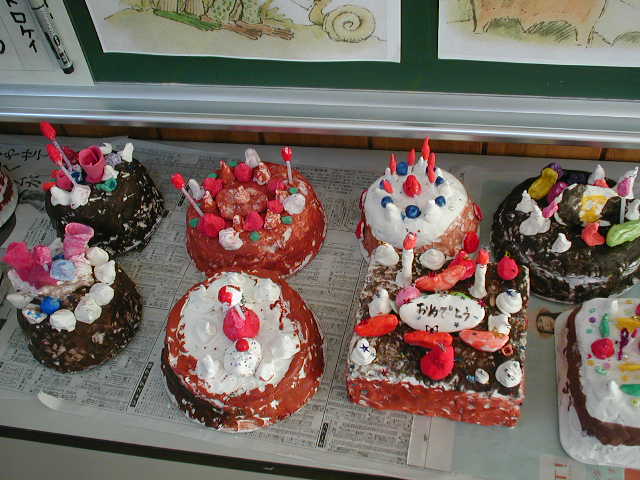 2年生は手作りの工作でケーキなどを作っていました(%笑う男%)(%笑う女%)(%とんかち%) まさに力作で、見ていてもおいしそうなのがたくさんありました(%笑う男%)(%音符2%)