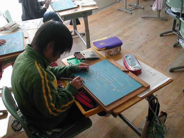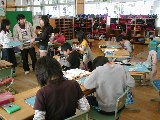 最初は4年生のスクール生がいる教室へ向かいました。図工と算数をやっていましたが、両方のクラスを見せてもらいました(%笑う男%) サッカーの時のような元気さはなかったように思いましたが、それでもきちん授業を受けていたと思います(%笑う男%)