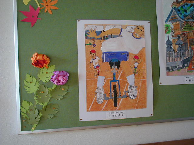 最初の1時間目は4,5年生を見させてもらいました(%笑う男%) 4年生は市位 亮典くん、市位 直貴くんがスクールにはいるのですが、それ以外にもコーチが八千代の少年のコーチをやっていた頃があって、この4年生が1年生の時に少年で教えていた子も数名いて、元気そうでした(%笑う男%) 亮典くんはすごく意欲的で元気に発表していたし、とにかく表情が生き生きとしていました(%笑う男%)(%星%) ずっと見ていると、『得意』ではなくても『好き』って気持ちが出ていたし、それがその表情に出ていたんだなぁ〜と思いました(%笑う男%)(%星%) 直貴くんも国語の時間でしたが、言葉を懸命に考えて、書いて、発表して・・・と意欲的でした!!直貴くんの絵は廊下にこうして展示もしてあったので撮らせていただきました←今日の国語はこの『とる』という言葉についての勉強でしたね(%ニヤ男%) 写真はこの撮る、ですね(%ニヤ男%)(%星%)