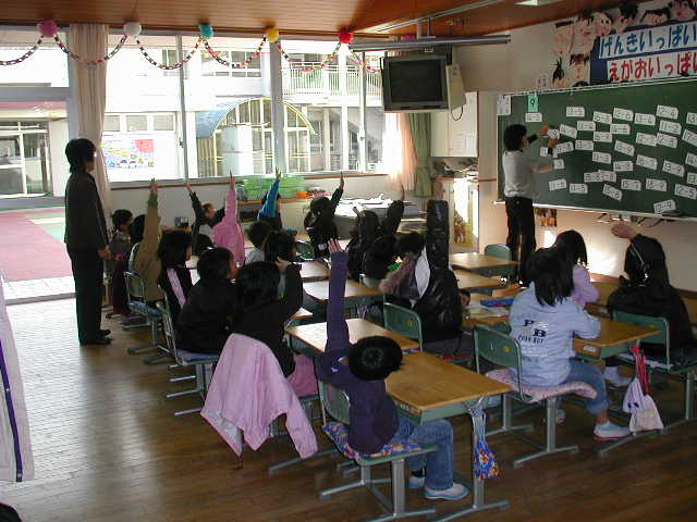 最後は、下に下りて1,2年生を見させてもらいました。コーチの存在を覚えてくれたいたようで少し授業がざわついてしまい先生には迷惑をお掛けしてしまいました(%痛い男%) その後は算数をしっかりとがんばっていて、やはり1年生らしい!!と言えるようなこの元気な発表の『手』!!先生が綺麗に挙げている子を当てるよ(%笑う女%) と言ったのもあって、余計にピン!!!と真っ直ぐ伸びていました(%笑う男%) かわいかったし、キッズの時から比べるとたくましく、すっかり成長したな〜〜って感じでした(%笑う男%)