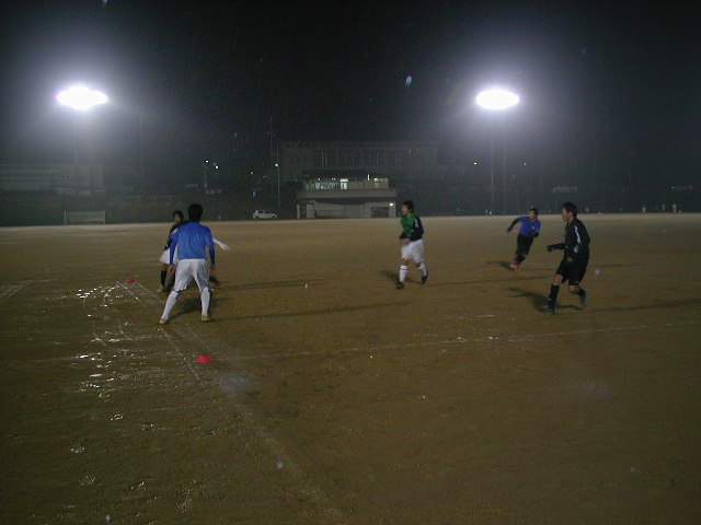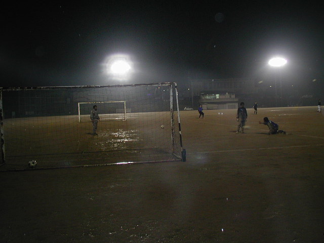 最後はゲームをしました。もう下はドロドロです。まともに転がらないボールなのは分かっているはず。なのに、普通のグランドと同じ事をやろうとしている子が多かった(%ショボ男%) 出来る訳ないじゃないの??と言いたい(%ショボ男%) 晴れてたら出来る!なんて最低の言い訳だし、言い訳にもなっていない。今はどうなんだ?どんな状況だ?この状況だったらどうなるの?なんて考えたら分かる話。それでも、工夫がなかなか出ない。1年生はキーパーからパスをもらえない(%ショボ男%) 自分のマークなんて見ないでただボールを欲しがり、出されたボールをインターセプとされて失点・・・。それも一回二回の話ではない(%ショボ男%) 同じ過ちを繰り返していながらなかなか気付かないのは、考えてやっていない以外の何ものでもない。1年生はとにかく頭が休む。プレーしている最中に何度も何度も。2年生とゲームしているのに楽にやって勝てるはずがないのに・・・。そういう当たり前な部分をもっと考える必要がある。