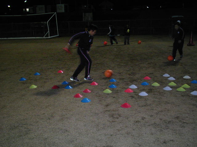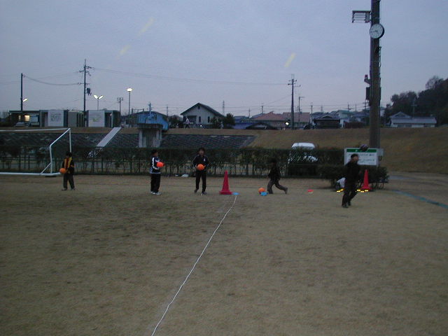 その次はドリブルをしました(%笑う男%) 今日は、マーカーを散らばせてそれをドリブルしながら拾っては戻り、繰り返して多くのマーカーを集めるゲームをしました(%笑う男%)(%星%) これはドリブル練習という事と、思った場所で止める技術、ターンの技術の練習も含まれていたし、それプラス楽しめるゲーム感覚でやるスクールにはもってこいのメニューだと思います(%笑う男%) ただ、ひたすら往復するだけでは楽しくはないし、こうして何かの目的がってやるだけでも気持ちは楽になるものだと思います(%笑う男%)