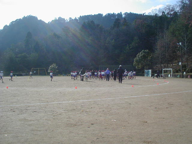 今日のコーチはコースには折り返し地点があるので、そこまでは先頭グループの近くを走り、折り返してからは一番後ろでがんばっている子と走るようにしました(%笑う男%) 最初の1,2年生は1キロしかないので折り返しもなく、そのままコースを回ってゴールするコースだったので、一番後ろでがんばる子供と一緒に走りました(%笑う男%)
