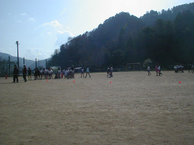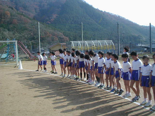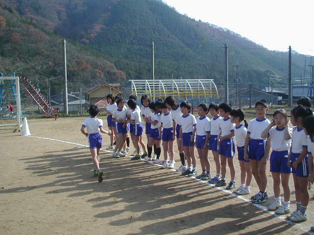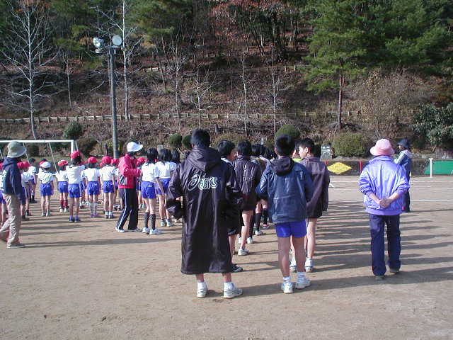 それでも、最初はトップ集団にくっついてみんなに声を掛けながら走りました(%笑う男%) そして、同じように折り返し地点まではトップ集団とがんばり、折り返してからは最終の子の所まで走り、また一緒に折り返し地点を目指してがんばりました(%笑う男%) 高学年になる程、どうしても前と後ろの差が大きいから、最後の5,6年生の時はみんなよりだいぶ長い距離を走った事になりました(%笑う男%) ただ、みんなのがんばっている表情を見れる事で充実した走りが出来ました(%笑う男%)