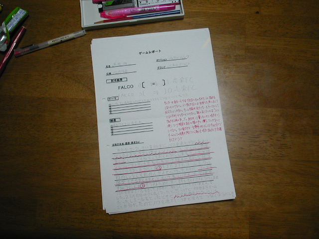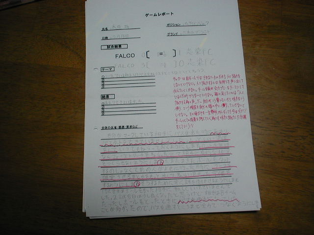 昨日は週の最初の練習になるので、週末の試合のレポートを提出してもらいました(%笑う男%) このレポートは当然各自の手書きなので、みんなのその時の心境とかが手に取るように分かります。悩んでいるな・・・とか、調子良さそうやな、とか。今までの卒業生ともこうしたレポートでの対話によって、普段会話に時間を一人一人割けないコーチとしてはみんなを知る最終兵器になっています(%ニヤ男%)