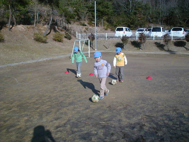 最後はシュートを一人一本ずつ打ってもらって終わりました(%笑う男%)(%音符1%) 最後終わってから、汚れと寒さに呆然として動きが止まっていた男の子。しかも泥を洗い落とすだけで手が冷たい、冷たいと連呼していたのに対し、対照的だった女の子は『うわ〜めっちゃ汚れたわ〜』(%痛い女%)(%痛い女%) と本当に最後までたくましく元気でした(%ニヤ男%)(%ニヤ女%) とは言っても、インフルエンザが流行ってきている世の中でもあるので、しっかりとうがいと手洗いをして菌に負けないようにしてほしいと思います!!