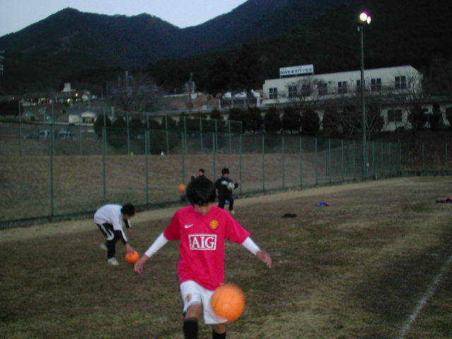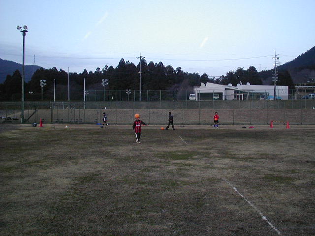 今日は加美スクールの日でした(%笑う男%) 加美はやはり北部に位置する場所で八千代もだいぶ天気は変わりやすいのですが、加美はさらに寒さが厳しいので野球場のグランドは朝からの天気で一回凍ったのが溶けてしまったので結構緩い場所がありました(%ショック男%) それでも夕方の気温はそんなに低くなかったし、元気にがんばれました!!今日も開始時間に揃っていたメンバーとゲームをして楽しみました(%笑う男%) 加美のメンバーは非常にドリブルが大好きだし、コーチと勝負するのも対等に出来るぐらいなのでコーチもこの時間が楽しみです(%笑う男%)(%音符2%)