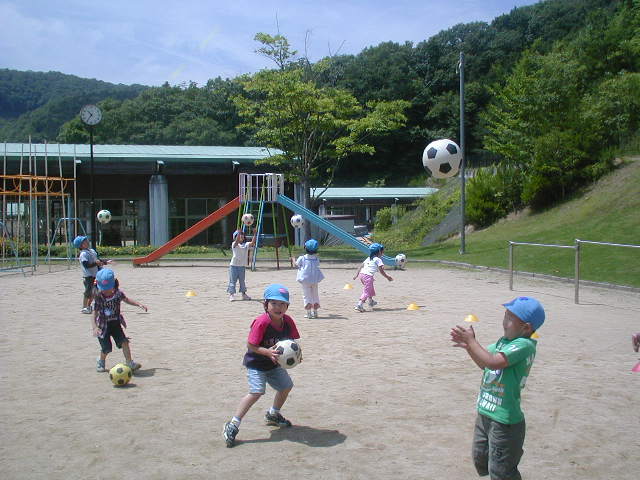 その後はまたボールに慣れてもらいました!!先週やったようにボールを上げてキャッチとか、拍手してキャッチとか、いろいろやりました(%笑う男%)(%笑う女%) 少し慣れてきたようでみんなボール感覚は良くなっていると思います(%笑う男%)