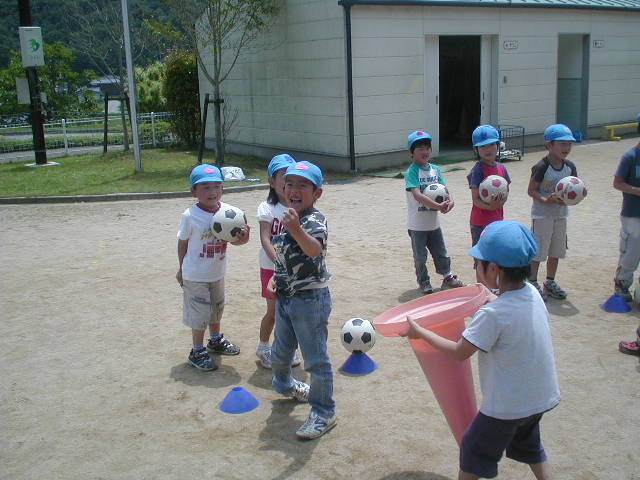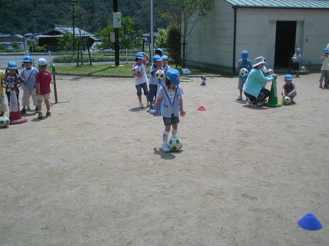 みんな上手に出来ていました(%ニコ男%)(%笑う女%) 足でボールを扱う事は習慣にしないとなかなか難しいものですが、慣れるのも早い年代なのでもうちょっとやっていけば全員が簡単に出来ると思います(%笑う男%)(%笑う女%)