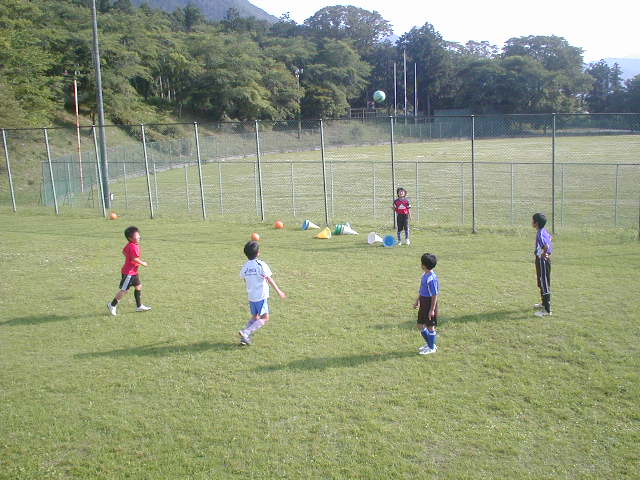 その後は前に進み、フリーのリフティングへと移りました(%笑う男%) 前に進むリフティングではいつもより狭いコートの中でどうしてもうまく出来ないとか、友達同士でぶつかってしまうのもあって、記録は出ませんでした(%痛い男%) でも、その後のフリーではよくがんばってくれたし、5箇所タッチでも、だんだん成果は見えてきています(%笑う男%)(%音符2%) それぞれの苦手な場所がうまくなっているし、森野くんのヘディングは本当に良くなっていると思いました(%笑う男%) 篤生くんのアウトサイドはいつ見ても絶品ですし、唯人くんのインサイドもとてもうまくなっています(%笑う男%) 藤田くん、畑中くんも苦手でなかなかうまく出来なかったインサイドやアウトサイドがきちんと芯に当たるようになってきています(%笑う男%)