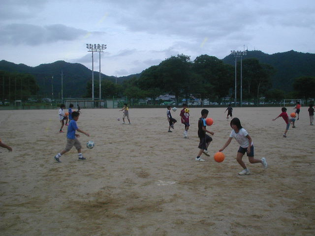 今日はどんよりとした中でしたが、逆にそれで涼しいと思えるぐらいの天気だったので元気に中区スクールが出来ました(%笑う男%) 今日は中区南小学校の5年生が自然学校に行ってるので休みが多かったのですが、それでも29名が参加をしてくれたので元気にスクールを開始しました(%笑う男%)