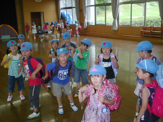 今日、スクールが早くなった理由は・・・お泊まり保育の日だったのです(%笑う男%)(%笑う女%) みんなお気に入りのリュックを背負って、とても楽しそうでした(%笑う男%)(%笑う女%)(%音符2%)