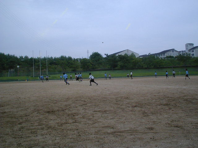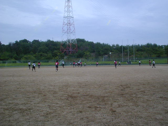 相手のパスの正確さにより、守備陣の裏をよく狙われたのですが、そこへのカバーがこの試合でも悪く、裏に出てから一斉に『よ〜いドン』の状態なので、足の速い訳ではない、うちはピンチが多くなっていました(%ショボ男%) また、裏を取られた選手が中央へ帰るという基本の動きも出来ていなかったし、まだまだ2年生チームになると守備のレベルが一気に下がるので、一つずつ改善していかないと!!と思いました。前半に1点、後半に1点を奪われたので0−2で敗戦となりました(%ショボ男%) そんな中で、中盤の近澤くんは競り合い、パス、シュートまでを孤軍奮闘していたのですが、精神面でまだまだムラが大きかった事、やる時とやらない時を作ってしまっていた所がこれからの課題です(%ショボ男%) 新チームの軸になるべき選手なので、気持ちの面でも引っ張っていけるように成長してほしいと思います!!期待しています(%ニヤ男%)(%星%)