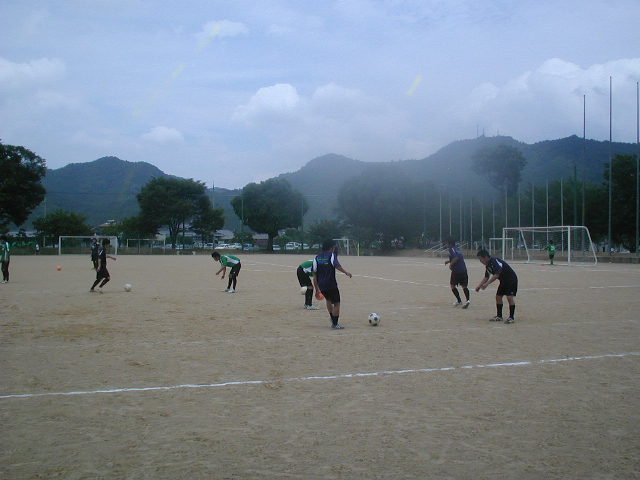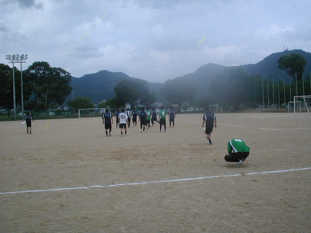 今日の相手は加西市のメンバーが中心のゴールマウスでした(%笑う男%) 昨年は2部で上がってきたチームですが、2年前には1−0の辛勝だった記憶があるので油断はもちろん出来ない相手でした(%怒る男%) 隣でアップしている様子を見ていても若い子が多く(自分から見ればほとんど若いのですが・・・(%ニヤ男%))、2年前とは違う様子だったので、最初から気合いを入れて、望みたいと思っていました(%笑う男%)