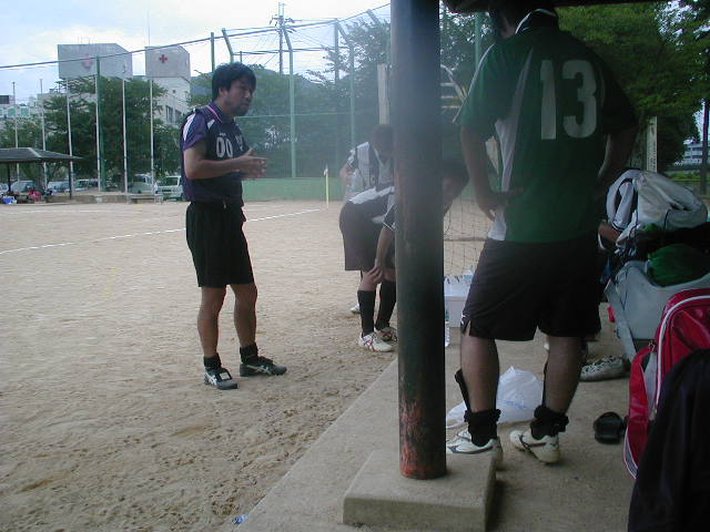 今日は人数が集まってきて、過去の試合の中でも一番人数が集まった試合となりました(%ニコ男%) でも、試合が始まるまでにアップをする時間は暑さにまいってしまうぐらいでした(%痛い男%) さらには昨日の練習の疲れが残ってしまっている感じの体は重たかったのですが・・・・そういうのは言い訳にも何にもならないので、自分なりのペースできちんとアップをして試合に備えました(%笑う男%)