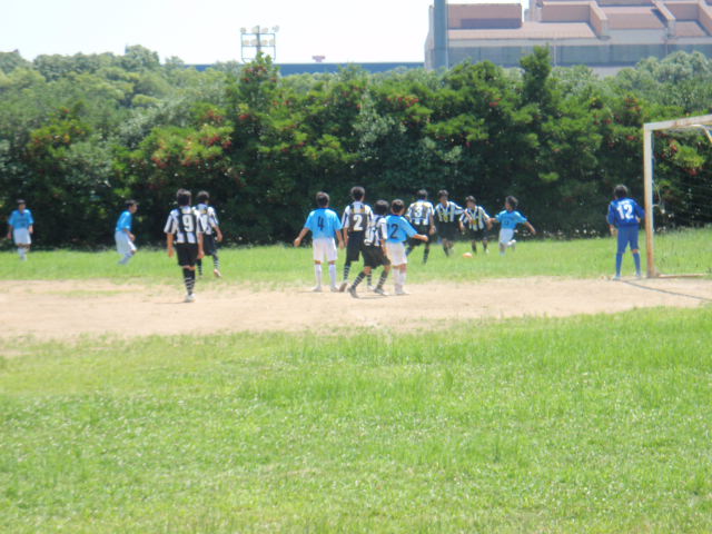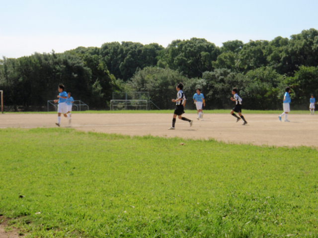 この試合は中島 大くんのすばらしいフリーキックで先制したのですが、その後が続かず、どんどん攻めながらも決められずに時間が過ぎて、後半には相手のゴールも許してしまい、1−1でした(%痛い男%) ゲームとしてはもったいないのですが、そうではなく試合の中での成果はたくさんありました(%笑う男%)(%星%) パスに気持ちが入ってきた事、1対1のがんばりや守備がたくさん出てきました。良くなってきた分、次の課題が次々と出てきているのでそれを練習で改善していけるようにしたいと思います(%笑う男%)