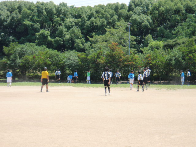 最初はAチームの試合でしたが、アップのほうは全体で行いました(%笑う男%)(%音符2%) 暑い中だったので元気をしっかりと出していこう!!という事で声を出してやってもらいました(%笑う男%)(%音符2%)