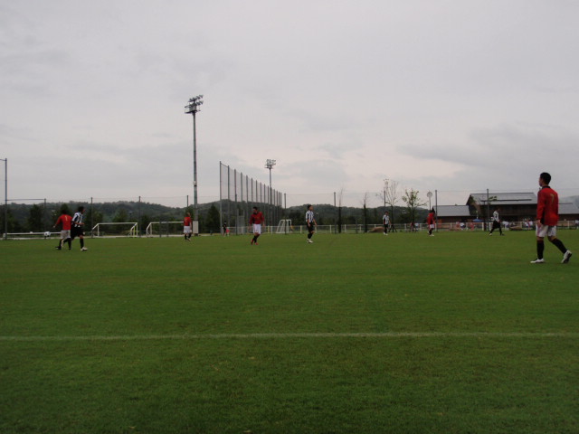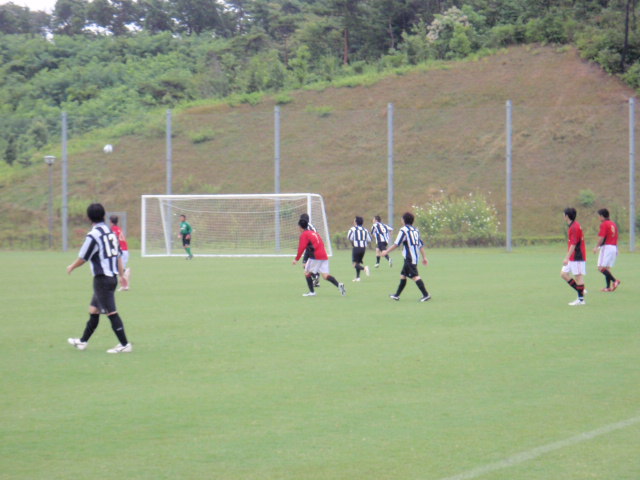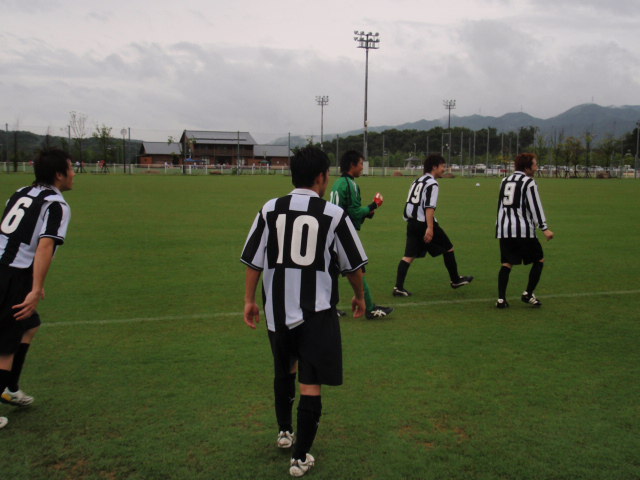 今日は朝から昨日とは全く違った天気で、雨が降り続いていました(%ショック男%)(%雨%) 本来なら雨になるとテンションも下がって嫌なものですが、この北播が誇る三木防災公園は芝生なので雨になっても下が濡れるだけでしっかりとサッカーが出来るすばらしい環境があります(%笑う男%)(%王冠%) またそれに加えて天然芝での試合だったので水たまりもない状態だったのでとてもありがたいと思いました(%笑う男%)(%音符2%)