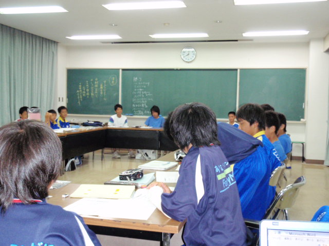 明日は北播大会なので今日は体を動かしたかったのですが、体育館が予約でいっぱいなのと小学校施設がお盆休みに入って使用出来ないという事で動ける場所もなかったので、明日から北播大会と遠征が続くので、今日はその遠征資料を渡して話をしたのと、明日の大会への意気込み、テーマなどをミーティングするようにしました(%笑う男%)(%星%)