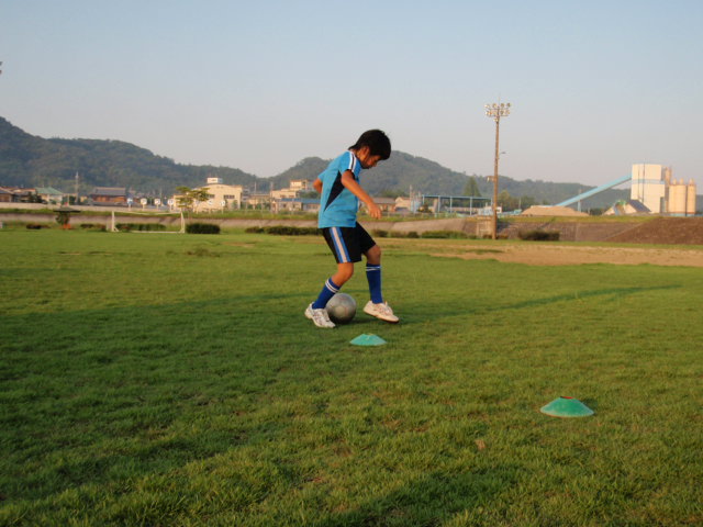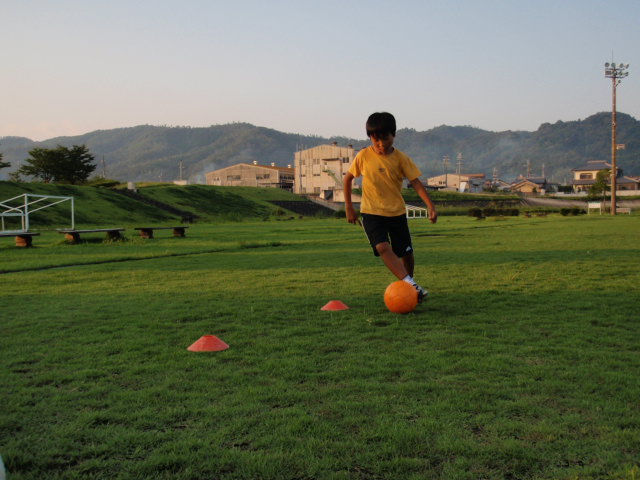 その後は西日をいっぱいに浴びてのリフティングでした(%笑う男%) だいぶ集中をしてくれるようにはなったのですが、どうしても暑さに負けてしまう子もいます(%痛い男%) でも焦らないでその子ががんばろうとした瞬間を逃さずに声を掛けてがんばってもらえるようにしていきたいと思っています(%笑う男%)