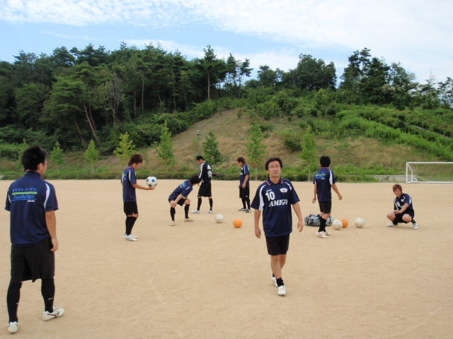 アップではみんなで基礎、パス回しを軽く行なってからストレッチを中心にやりました(%笑う男%) 暑い時期でもあったのであまりハードな事は出来なかったのですが、全員の良い雰囲気はしっかりと作れていたと思います(%笑う男%)