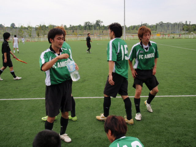 さらに足の止まってきた相手にするどいドリブルを仕掛けた藤原さんがエリアギリギリの所でファールをもらって、そのフリーキックを近澤くんが強烈に叩き込み、5−0。(%ショック男%)(%星%) 自分達でもまさかここまでの点差になるとは思っていなかったけど、その得点が生まれる為のすばらしかったのは守備ラインの完璧な集中力です(%笑う男%)(%音符2%) キーパーの石井くん、伊藤くん、一光くん、大橋くんの『絶対に無失点!!』という合言葉は本当にすばらしかったし、それだけのプレーをしてくれました(%笑う男%)(%音符1%) さらには、前線の岡崎さんが守備に後ろまで何度も走って体を張ってくれたし、人が抜けた穴には藤原さんがカバーを確実にしてくれたし、途中から入った拓朗くんも怒号のような強い声でチームを守り立ててくれた・・・。間違いなくチーム全員での勝利だったし、得点をしてくれた近澤兄弟、そしてアミーゴ全員が一つになれた完璧な勝利でした(%笑う男%)(%音符2%) このがんばりと成果を大事にして、またみんなで満足せずに次の試合に備えていきましょう!!(%笑う男%)(%音符2%)