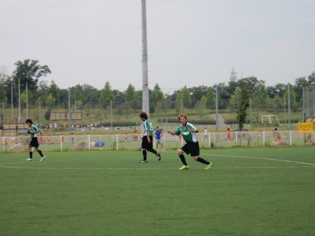そして、欲しかった後半の先制もうちが取る事が出来ました(%笑う男%)(%星%) ボールをうまくつないで広く展開した攻撃から、左サイドの恭平くんへ渡り、1対1を抜き去って見事なゴールが決まり、2−0に(%笑う男%) さらには今度は右から近澤くんが決めて3−0。もう相手の意識も切れてしまった事で冷静に試合を運べたうちはどんどんチャンスを演出し、右サイドの宇仁くんのクロスから恭平くんがドンピシャのヘディングを決めて4−0。このゴールもきちんと中央で岡崎さんが体を張っていたのも影のアシストと言えるでしょう(%ニヤ男%)(%星%)