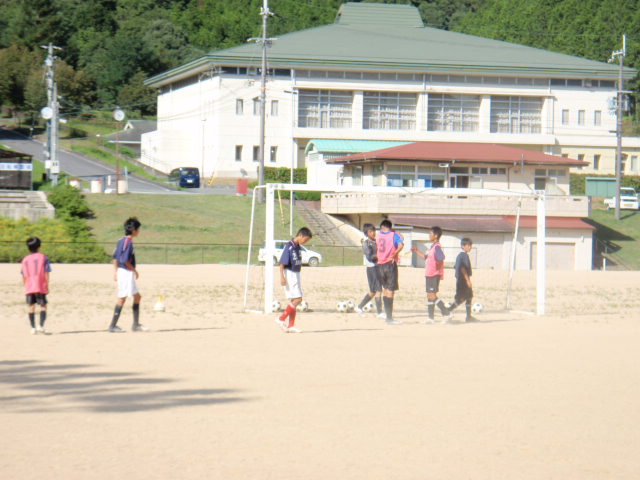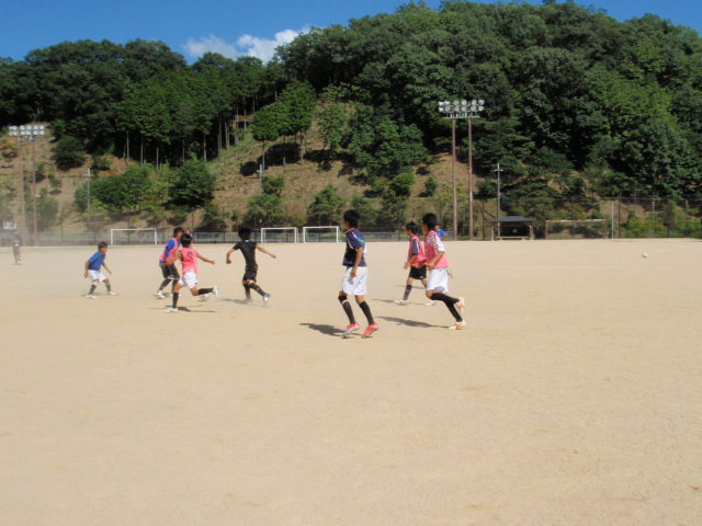 天気も良く、晴れてくれたので日差しは暑かったものの、秋の気配を感じさせるような風も時折吹いていました(%笑う男%) そんな中始まった練習はミーティングからスタートして予定などを確認した後に、今日のテーマとして『連動した攻撃』という事を伝えて練習開始しました(%笑う男%) 明日から始まる始業式に宿題が間に合わないという理由で数名休みだったのですが、自分の管理もきちんと出来ない事はまずチームに迷惑を掛けます(%怒る男%) 提出が遅れた場合は言い訳一切なしで、連帯責任にする事を子供に伝えていた為に連帯として迷惑を掛けないようにと自分で判断をして今日は休んだメンバーがいたのですが、同じ時間の活動をしているんだからもうちょっとそういう面の自覚をきちんと持ってほしいと思います(%怒る男%)