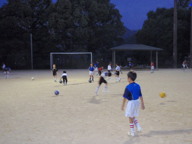 今日は夕方から八千代少年サッカーのコーチとしてグランドに行きました(%笑う男%) 自分にとってこのカテゴリーのコーチはとても勉強になるのでこうして勉強させてもらいに行きます(%ニコ男%) 今日も1,2年生を見る事となったのですが、まずは練習コートを先に来ておられた河崎コーチがきちんと設定してくださっているのが毎回のように助かりましたし、ありがたいと思っています(%ニコ男%)(%星%) そのコートで一人の1年生が『コーチ!!俺のボール取れるか??』と挑発してきたのです(笑) コーチをナメとるんかぁ〜〜〜(%痛い男%) とその勝負を挑み、最初は1対1をやっていたのですが、僕も、僕も、と増えてきていて気が付けばコーチ一人対13人にもなっていました(笑) さすがに厳しくなった状況の中でもコーチはがんばり、負けないようにと子供も必死になってきたので非常に本格的な試合みたいな状態でした(笑)