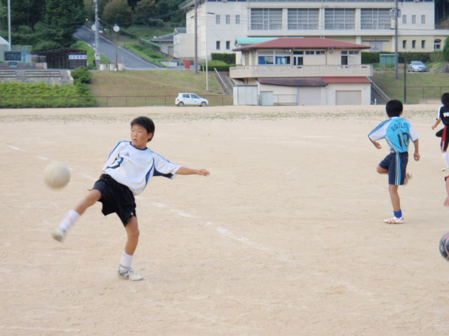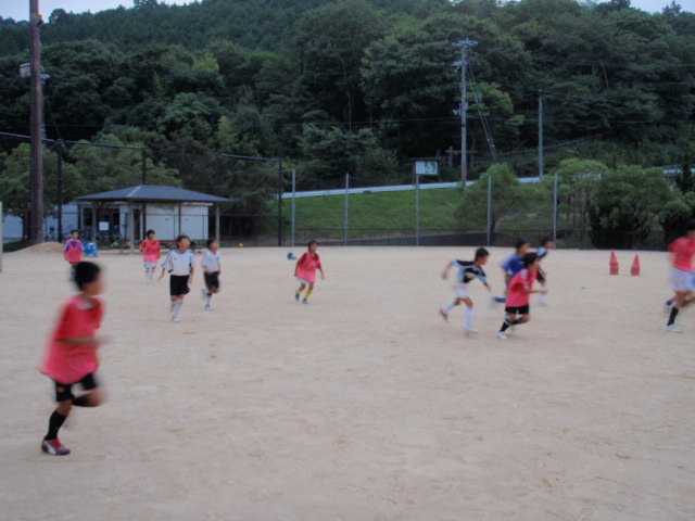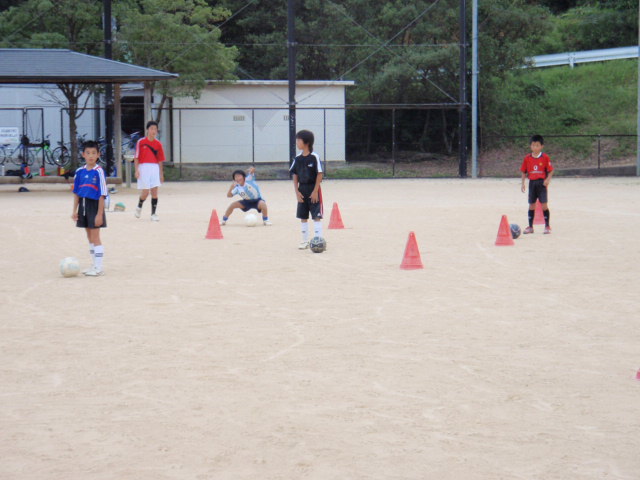 13人で16本のコーンを倒していくゲームで、1本倒せば1ポイントと分かりやすいルールでやりました(%ニヤ男%) それだけに1本でも多く倒したい気持ちは分かるものの・・・・蹴ったボールを手や足で触ってはいけないというルールを言っておいたので、それはしなかったのですが、石をぶつけたり、砂を飛ばしてボールを動かしたり・・・とまるで小学校1,2年生のような『姑息な手段』を使っていました(笑) これは姑息と言うべきか、高学年が出したズル賢さなのか?!コーチは姑息だと思っているのですが(%ニヤ男%)(%涙%)(%涙%) それでも偉かったのが6年生の下多 隆次くん!!さすが少年サッカーでも主将をしているだけあって、そういった事は一切しませんでした(%笑う男%) 自分は思い切って狙って倒せなかった事の悔しさはあったに違いないですが、それでもそういう真似はしたくない・・・というその姿勢は大人である雰囲気を感じました(%笑う男%)(%音符1%) もうちょっとそういう面もみんな見習いましょうね(%笑う男%)