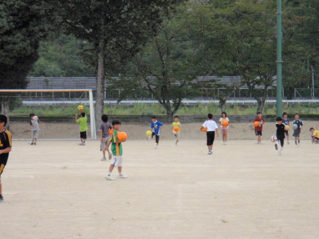 今日は中区スクールの日でした(%笑う男%) 今日は大気の状態が不安定で、いつ雨が降ったりしてもおかしくないと予報では言っていたように空は分厚い雲に覆われていました(%痛い男%)(%涙%) それでも雨が降るまではなかったし、元気に集まってくれたメンバーと今日も一緒にがんばりました(%ニコ男%) 今日も運動会の練習があったりして疲れている様子も見受けられましたが、それでもグランドに来てボールを触ると元気いっぱいのみんなは『さすが子供!!』という若さと元気さがうらやましかったです(笑)